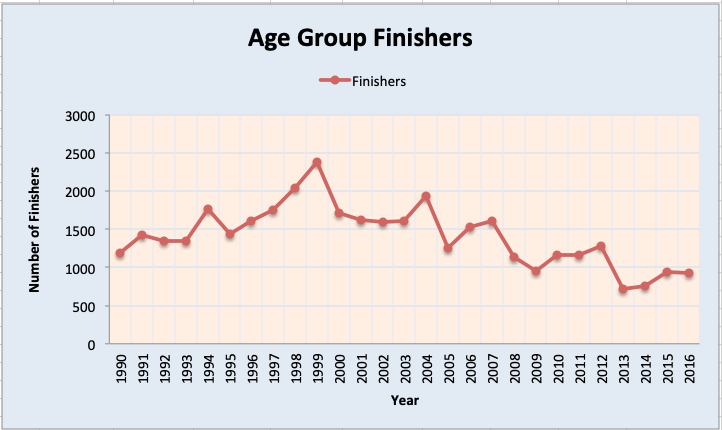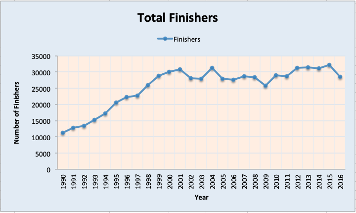 Total Finishers: This shows the total number of finishers over the years. A steady