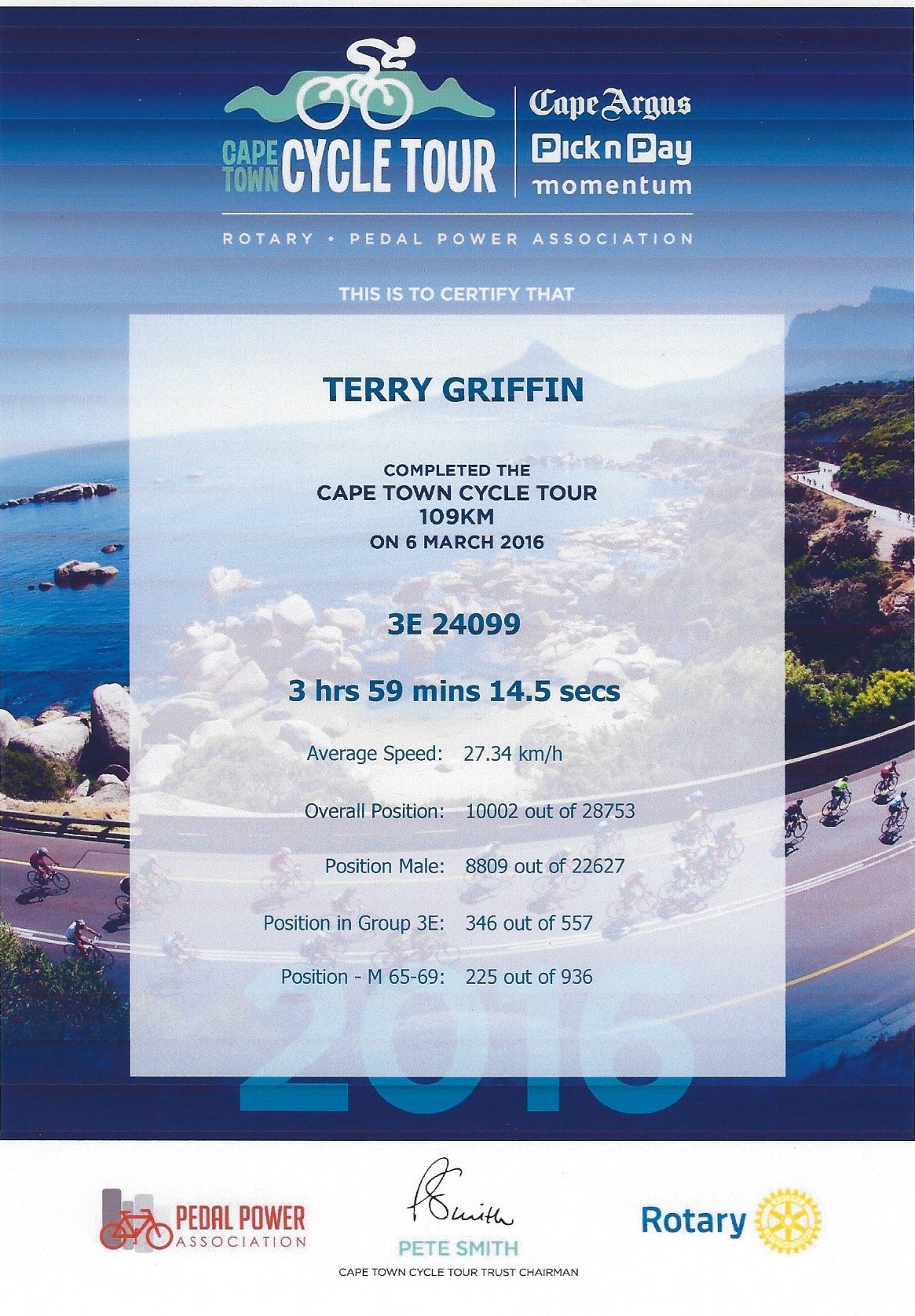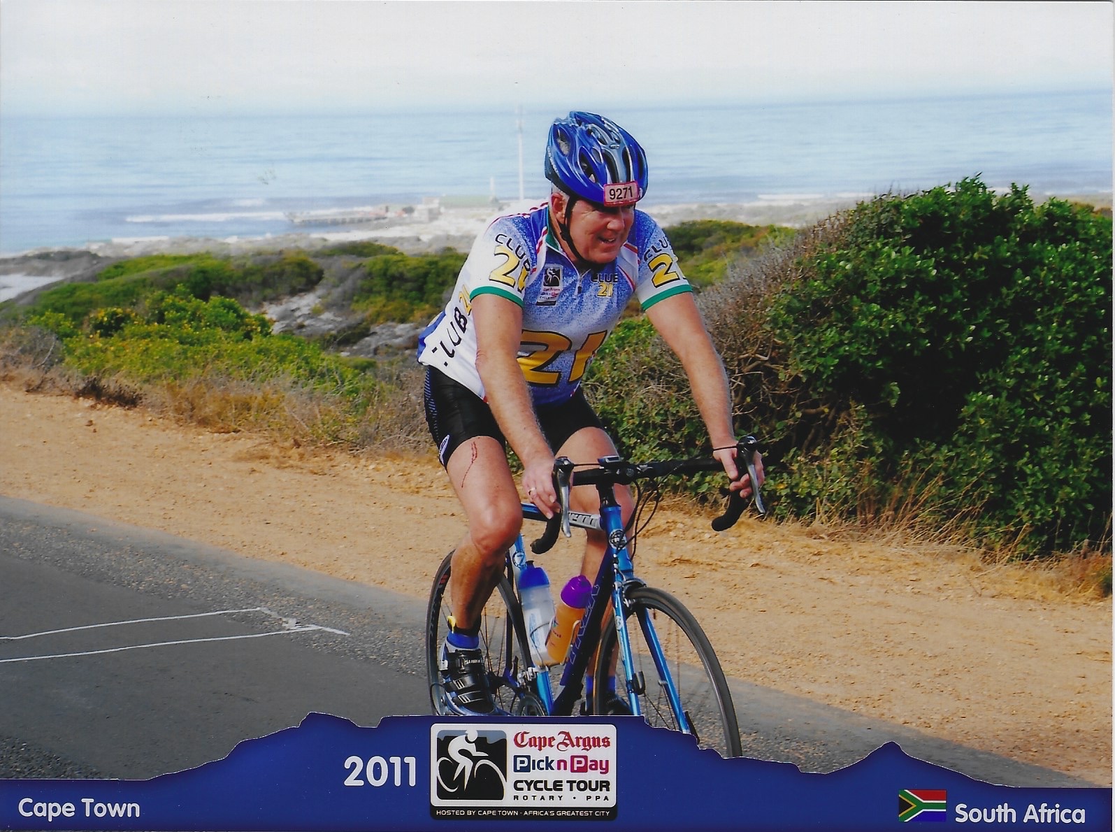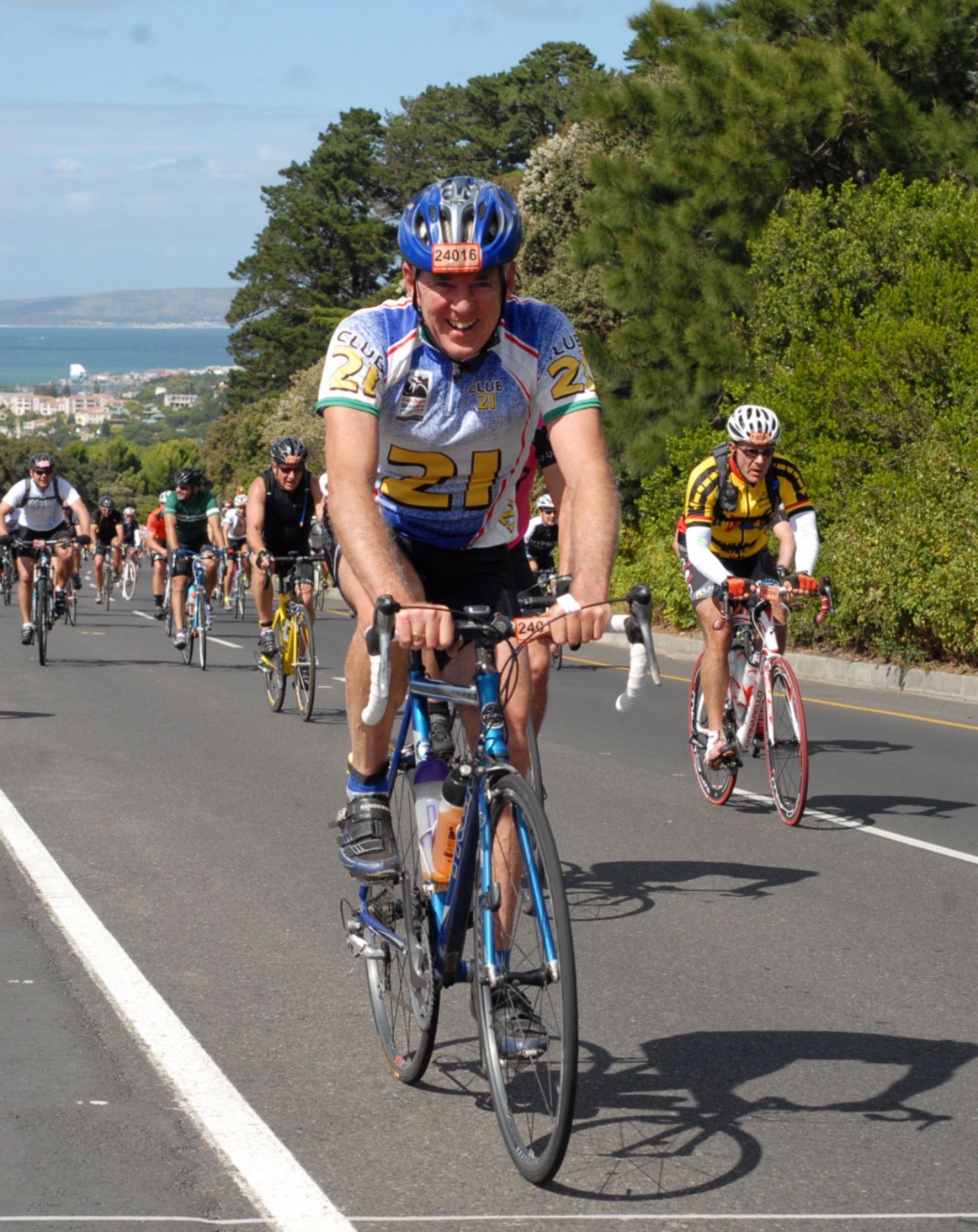 Toast and honey and a coffee for breakfast, cycled through to the start and left at 7:10. Lovely calm day. An easy ride punctuated by three stops for leaks plus the dreaded Boyes Drive. Lunch with my sister Norma at Sanbar in Camps Bay. My first year in my coveted 21 jersey, and the perfect Argus.