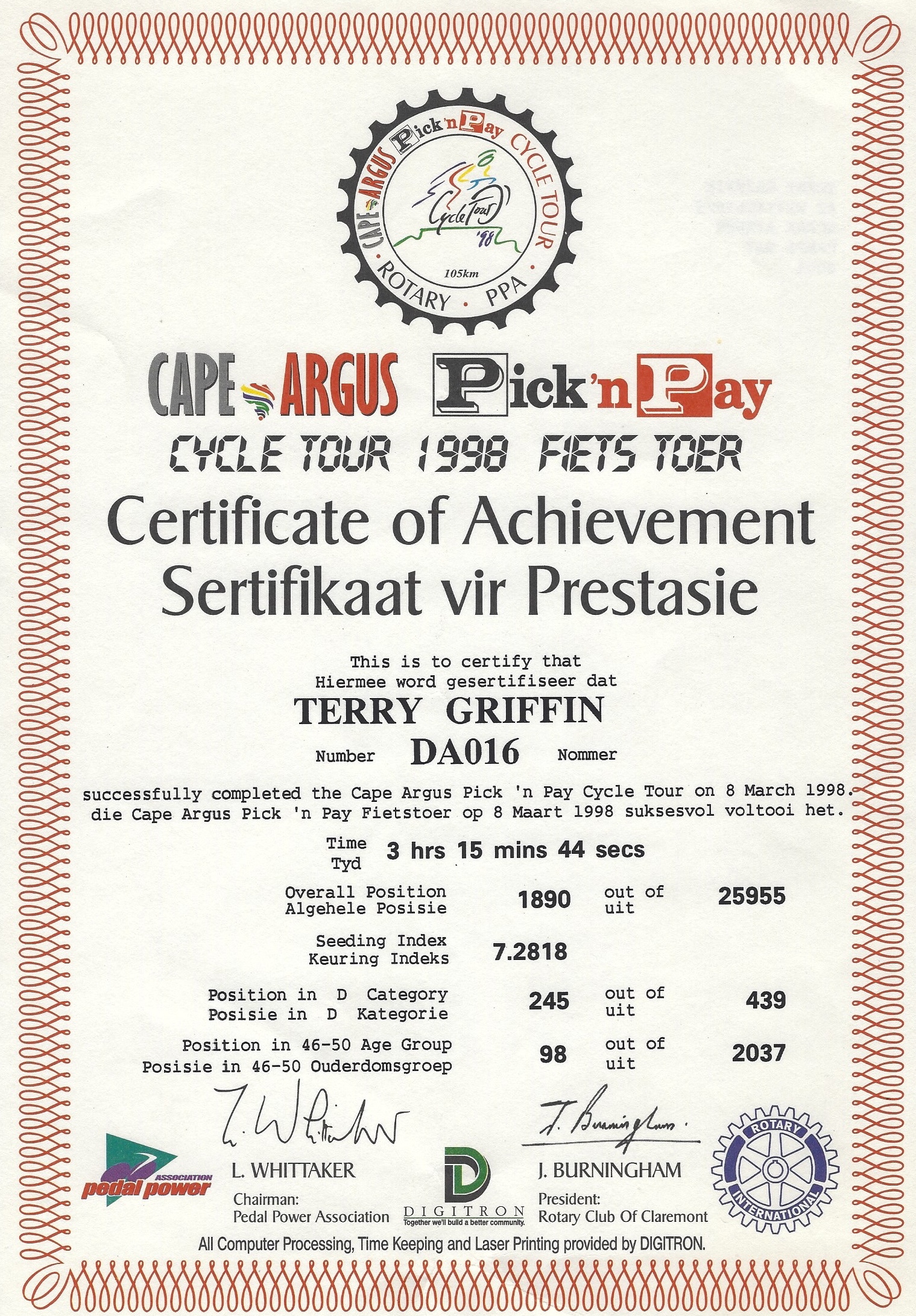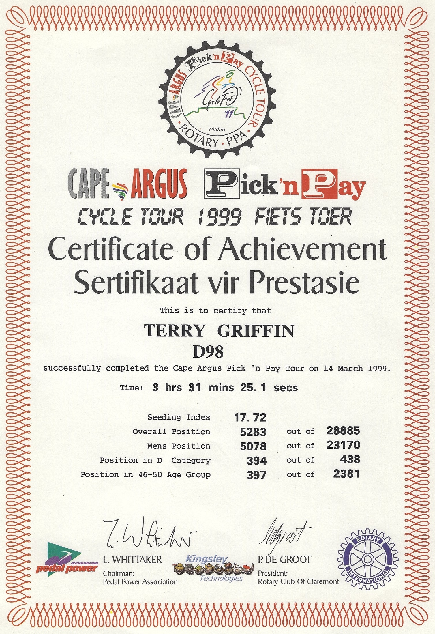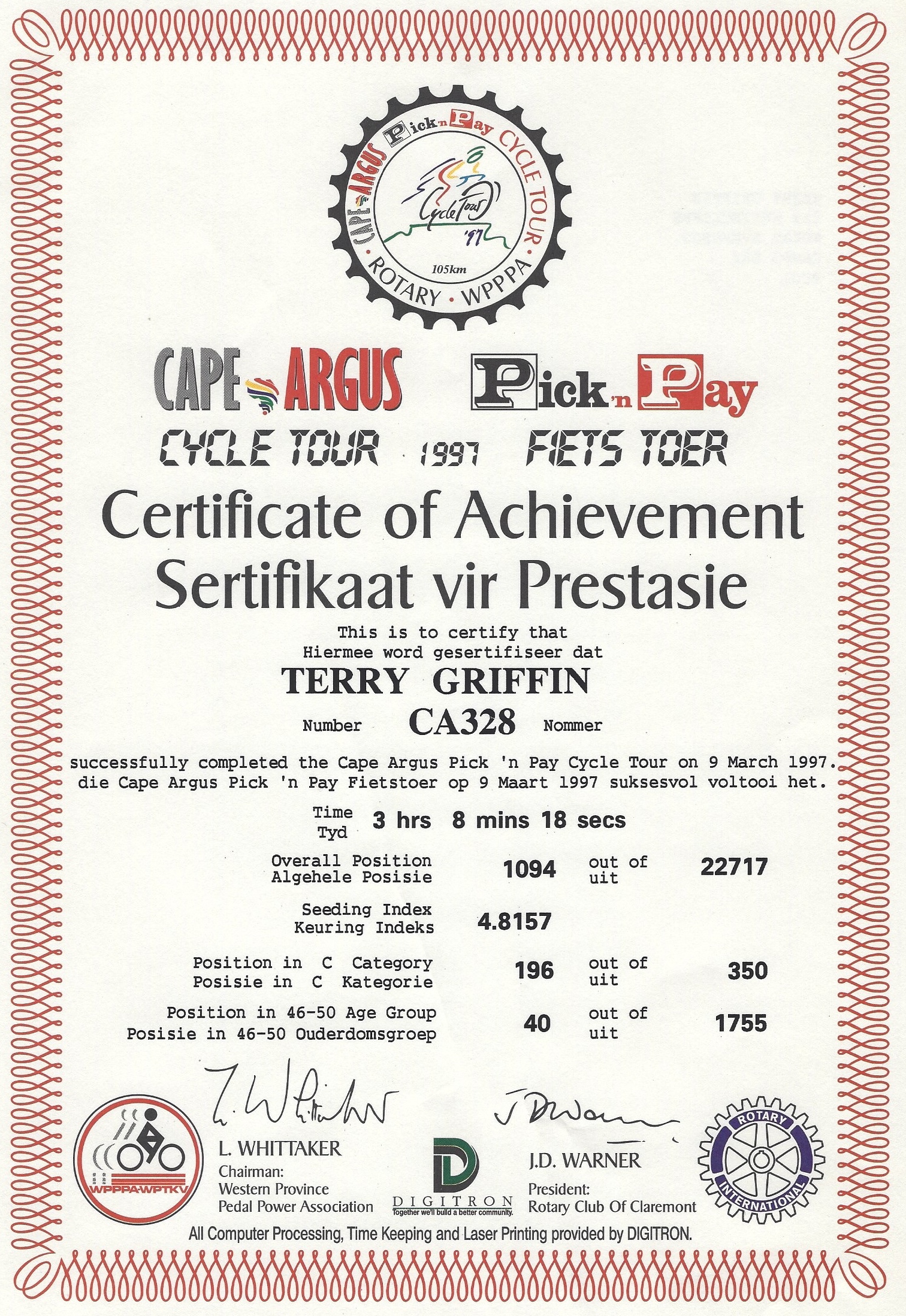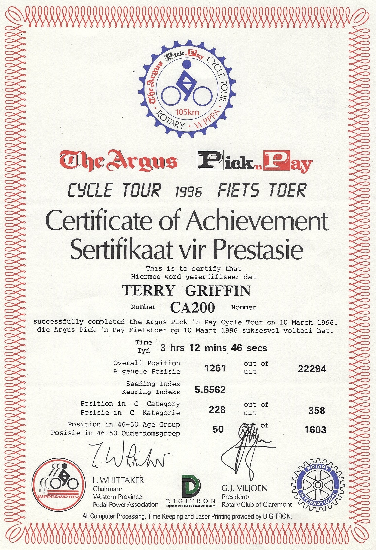 Towards the end of 1989 my friend Eric Newton sold me his elderly Raleigh bike and persuaded me to enter the Argus. He and a number of other friends had already been doing the Argus for a few years: Pete de Jager, Sean Pope, Steven Bertie-Roberts, and others. Since I was living in Hout Bay at the time, my first training ride was half way up Chappies!